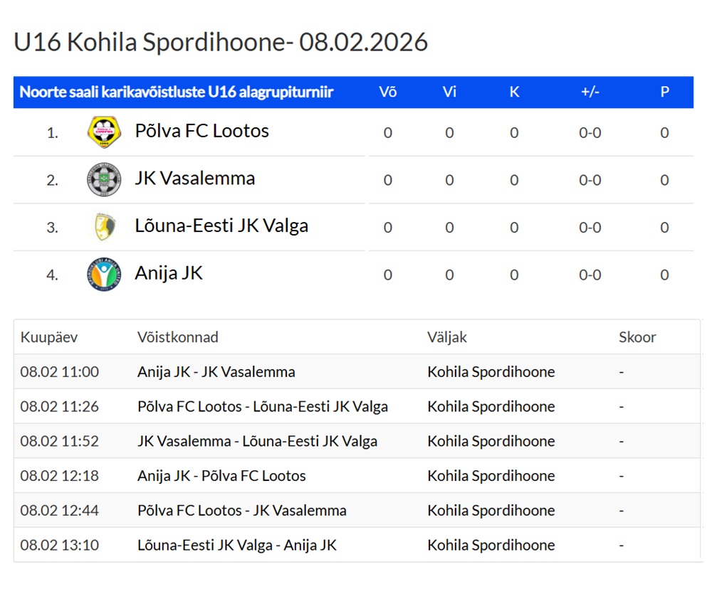 Klubi U16 võistkond osaleb Kohila spordihoones toimuvatel saalijalgpalli noorte karikavõistlustel.