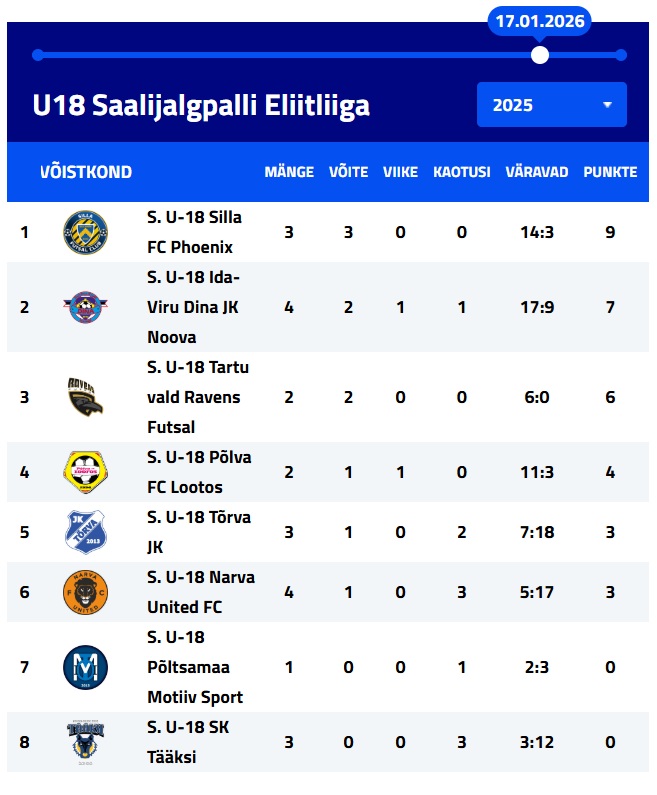 12:00 U18 FC Lootos – U18 Tartu valla Ravens Futsal