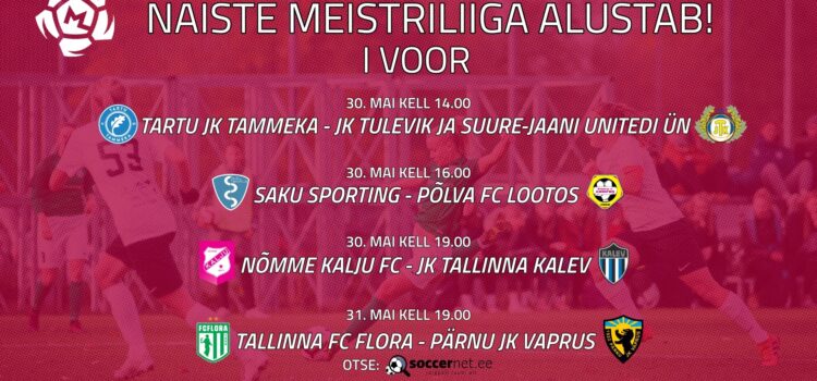 Laupäeval, 30. mail on võistlustules kuus naiskonda. Esimeses mängus kohtuvad Tartu Tammeka ning Tuleviku ja Suure-Jaani ühendnaiskond. Saku Sportingu jaoks algab hooaeg koduväljakul, kui võõrustatakse Põlva Lootost. Päeva viimane mäng toimub Hiiu kunstmurustaadionil, kus lähevad vastamisi Nõmme Kalju ja Tallinna Kalev. Valitsev meister FC Flora võõrustab pühapäeval, 31. mail Lilleküla harjutusväljakul Pärnu Vaprust. Naiste Meistriliiga