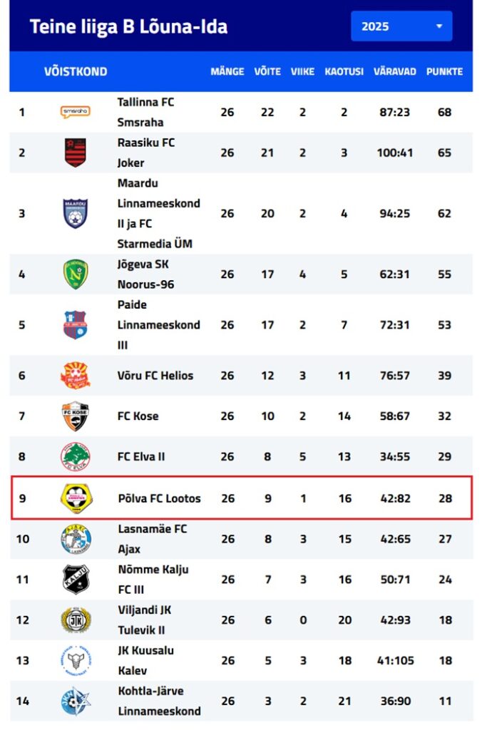 Hooaeg 2025 lõppjärjestus
